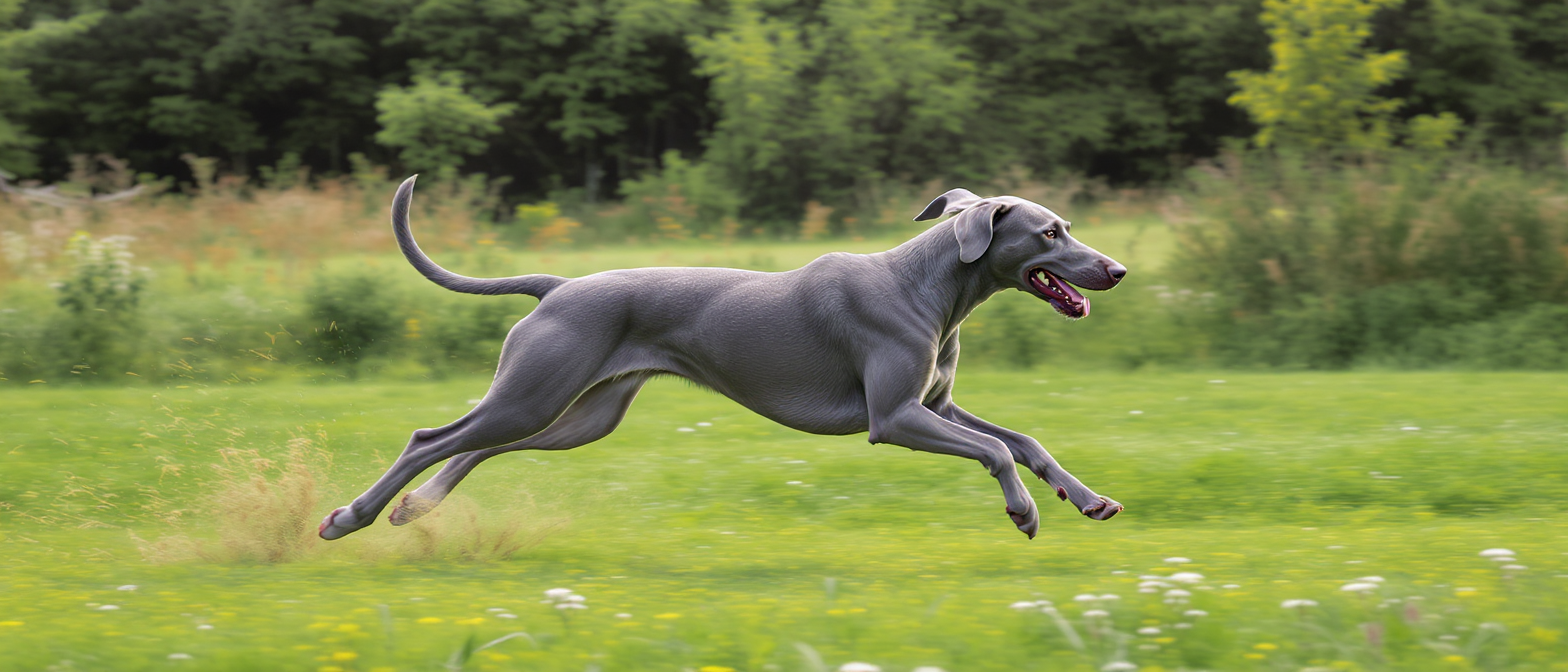Le Braque de Weimar se distingue par une silhouette à la fois élancée et musclée, répondant parfaitement aux exigences d’un chien de chasse performant tout en étant un compagnon chic et raffiné. Cette alliance fait de lui un parfait modèle d’Élégance Animale tout en incarnant la puissance d’un Sportif Canin.